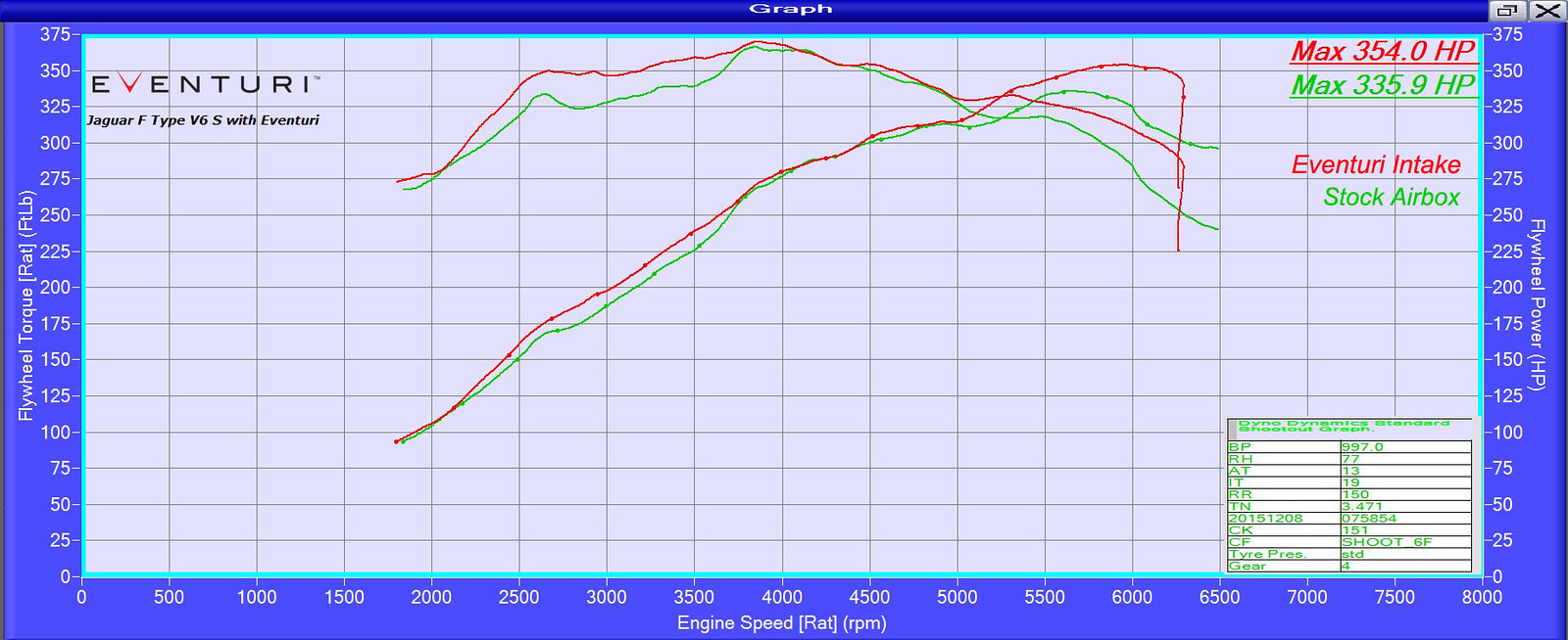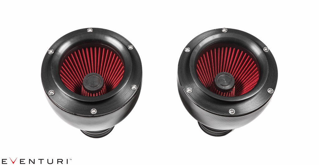 The Eventuri Intake system for the Jaguar F-Type fits both the 3.0l and 5.0l supercharged variants. We have replaced the standard airboxes and resonator tubes with our Patent Pending filter housings mated to bespoke carbon fibre tubes. To ensure a smooth airflow path, our tubes are matched in diameter to the stock MAF sensor tubes downstream and then matched again to the engine inlet tubes upstream. The combination of our Eventuri housings and tubes improve the aerodynamic efficiency of the inlet track resulting in significant increase of power and torque. This is a stand-alone upgrade which requires no further tuning.